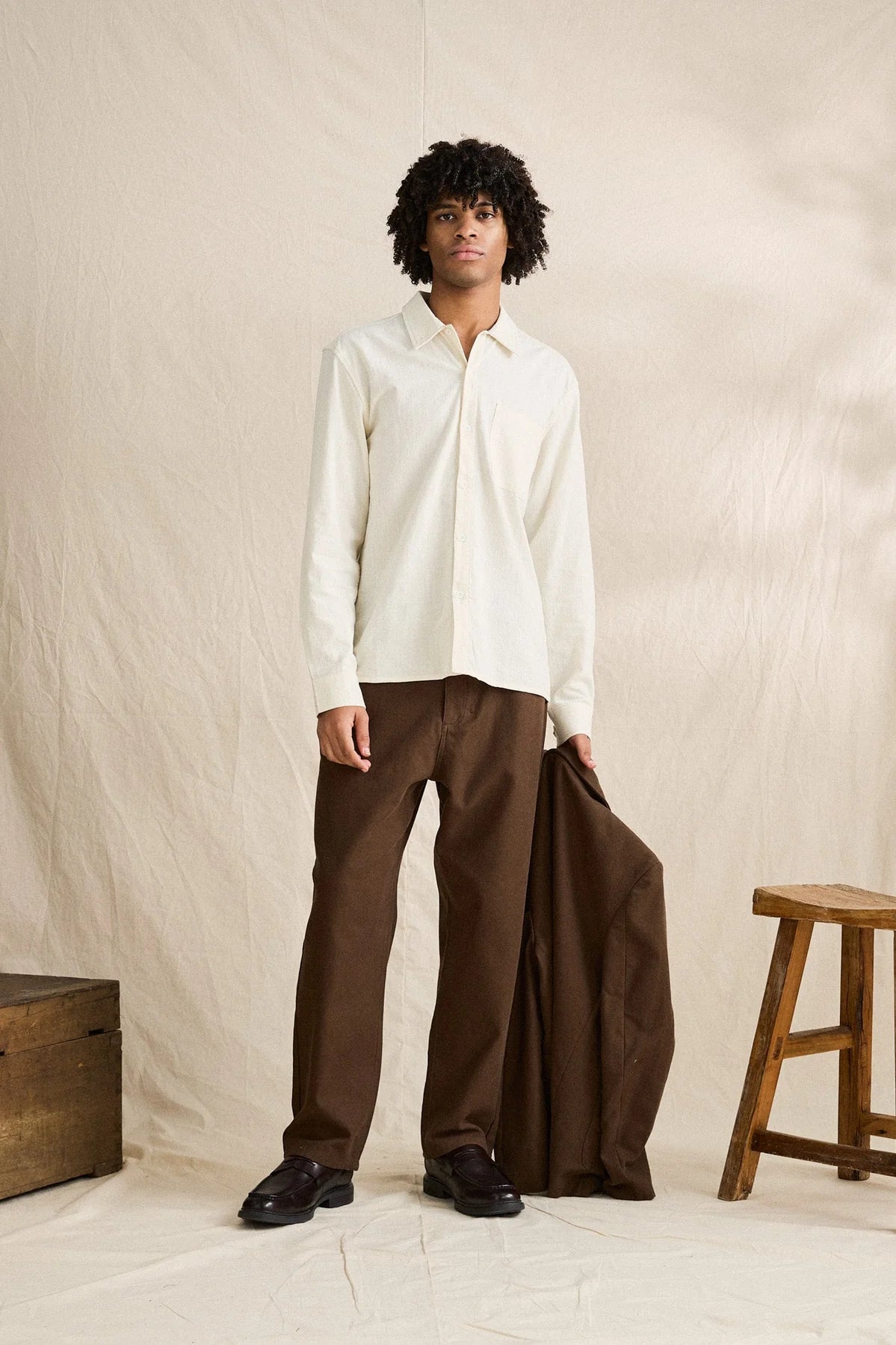Le pantalon Palmer couleur tabac brûlé offre une coupe décontractée et des détails raffinés. Doté d'un ourlet semi-élastiqué à l'arrière, il allie structure et confort dans une teinte naturelle et chaleureuse.