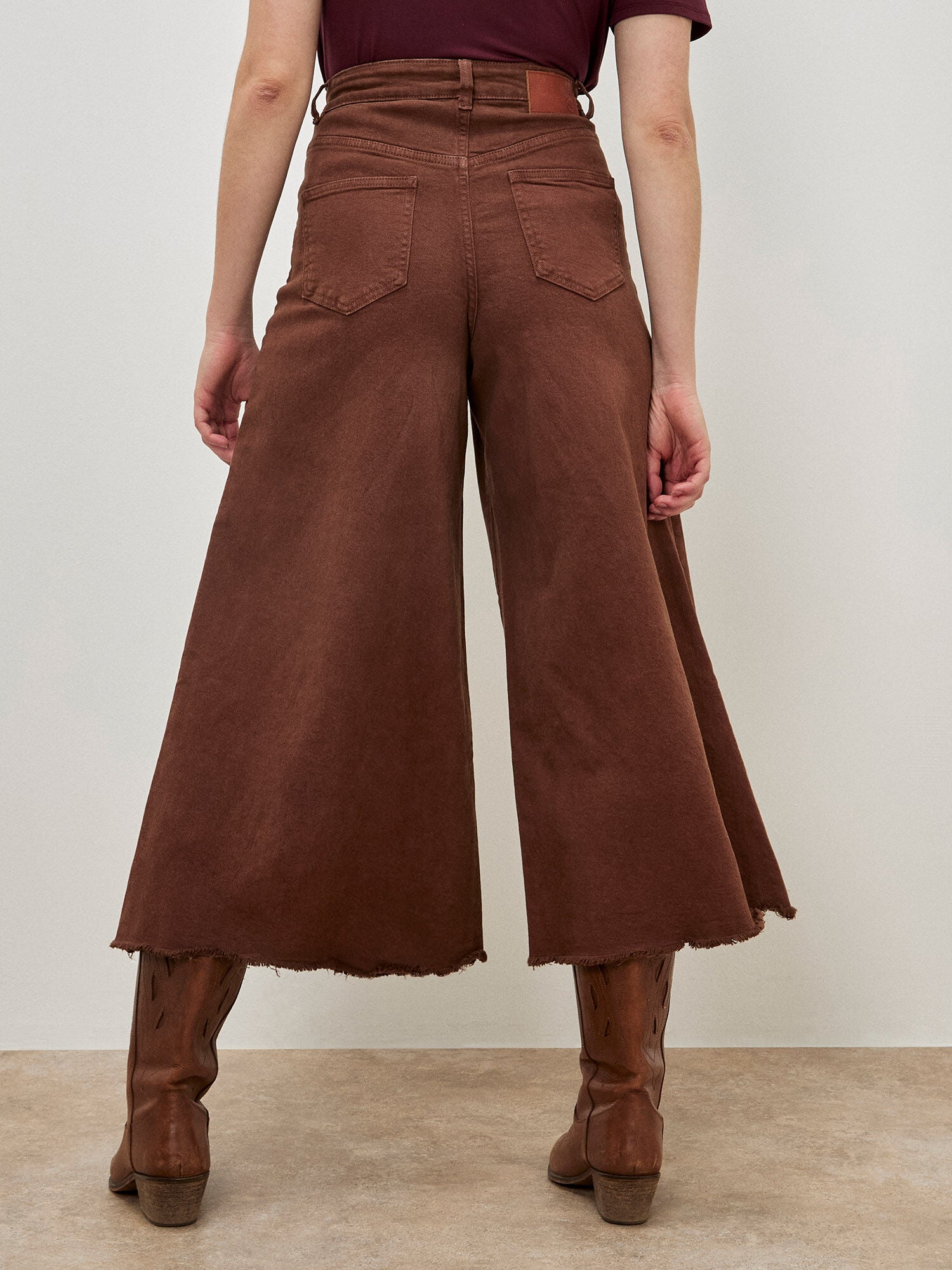 Confectionné en denim doux, il est doté de poches plaquées à l'avant et à l'arrière, d'une fermeture à glissière et à bouton, ainsi que d'ourlets effilochés.