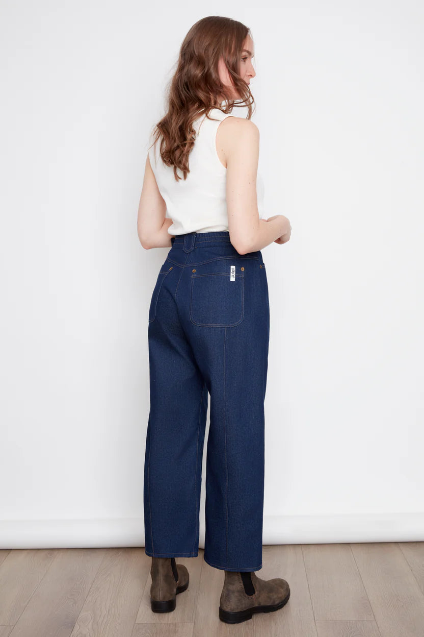 Le Pantalon Alice en  Jeans denim jambe droite qui suit la jambe au naturel. La découpe du devant et du dos rend la jambe longue et structure la silhouette. Le nouveau denim est féminin et sobre. Un denim authentique.
