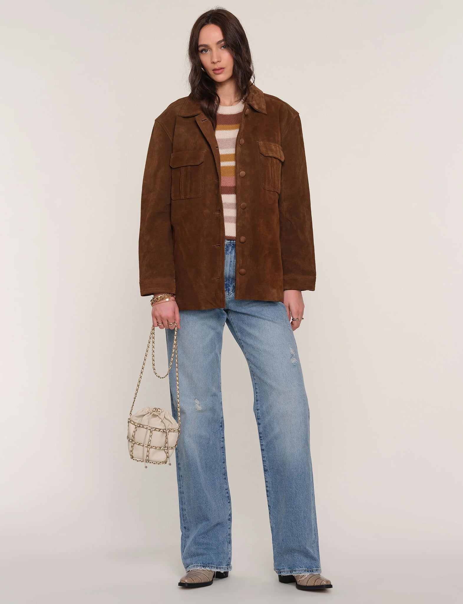 La veste Saint est une veste-chemise décontractée en daim véritable.